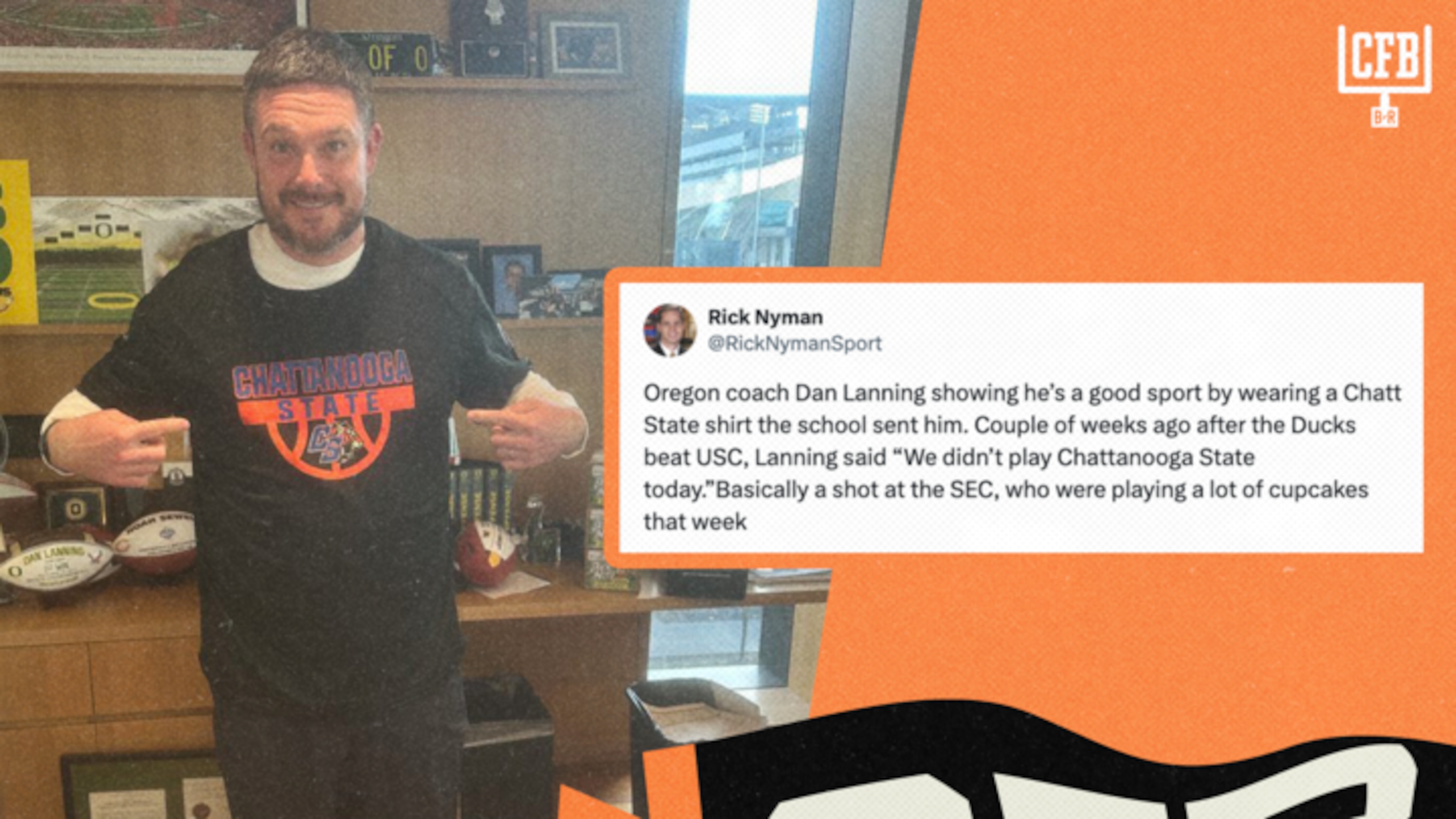 15+ hour, 30+ min ago (191+ words) Lanning mentioned the community college in a Nov. 22 press conference, when he was asked about his College Football Playoff hopes after Oregon's win over USC. The Ducks head coach answered, "This conference is a really good conference. It's competitive. We didn't play Chattanooga State today, like some other places. We competed." Chattanooga State has softball, baseball, basketball and volleyball programs, but does not field a football team. Lanning was presumably aiming his comment as a jab toward conferences, like the SEC, who scheduled fewer than the Big Ten's nine conference games each season. Oregon itself has also received criticism for its strength of schedule this season. Prior to the win over USC, the Ducks had only claimed one ranked win. That victory came back in September over Penn State, before the Nittany Lions slipped out of the Top 25 altogether. Oregon…...